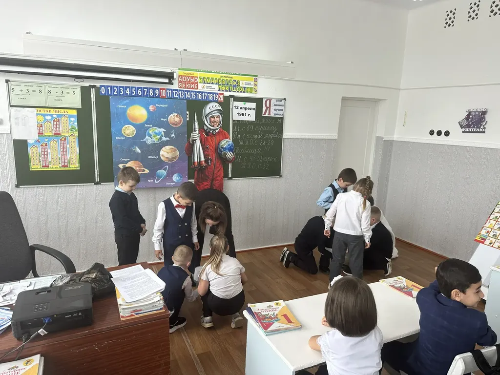 Сегодня для учеников первого класса состоялся особенный урок, посвящённый Дню космонавтики. В этом году исполняется 65 лет со дня первого полета человека в космос! Организаторами выступили сотрудники нашего Дома культуры и библиотеки, которые приготовили для ребят настоящее космическое приключение!