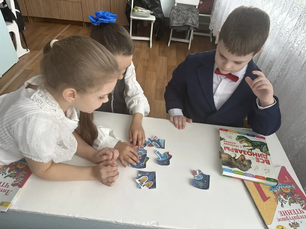 Особую атмосферу создали интересные задания: ребята отгадывали космические загадки и ребусы, а также складывали космические пазлы.
